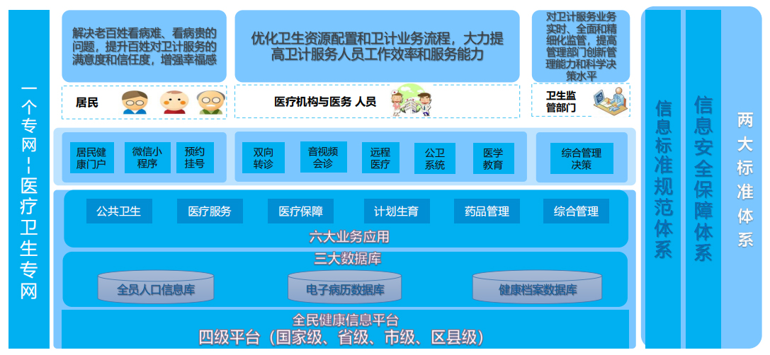 全面建成互聯互通(tōng)的(de)國(guó)家(jiā)、省、市(shì)、縣四級人(rén)口健康信息平台,實現(xiàn₩)公共衛生(shēng)、計(jì)劃生(shēng)育、醫(yī)療服務、醫(yī)療保障、藥 品供應、綜合管理(lǐ)等六大(dà)業(yè)務應用(yòng)系統的(de)互聯互通(tōng)和(hé)業(yè)務協同。