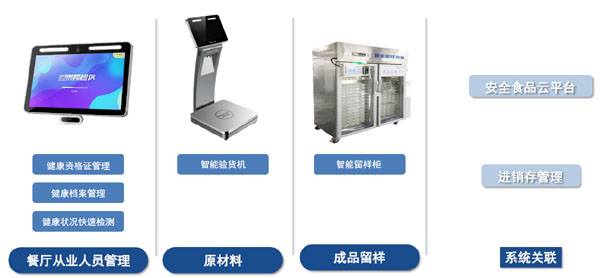用(yòng)于建立食品安全信息化(huà)和(hé)人(rén)工(gōng)智能(néng)規範管理(lǐ),包括餐廳從¥(cóng)業(yè)人(rén)員(yuán)的(de)從(cóng)業(yè)資格管理(lǐ)、健®康狀況快(kuài)速檢測、原材料安全檢測、成品留樣等功能(néng)。