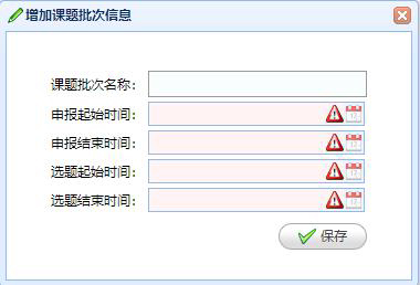 課題批次管理(lǐ):管理(lǐ)創新項目課題的(de)批次、申報(bào)起止時(shí)間(jiān)和(hé)選題的(de)起止時(shí)間(jiān)。