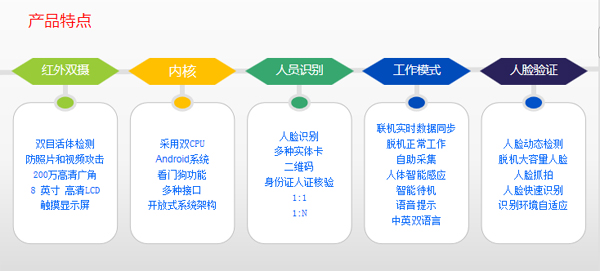1、人(rén)臉一(yī)體(tǐ)機(jī)可(kě)外(wài)接二代身(shēn)份證讀(dú)卡模塊、二維碼讀(dú)卡器(qì)。可(↔kě)讀(dú)取身(shēn)份證裡(lǐ)面的(de)照(zhào)片和(hé)身(shēn)份證号碼信息。