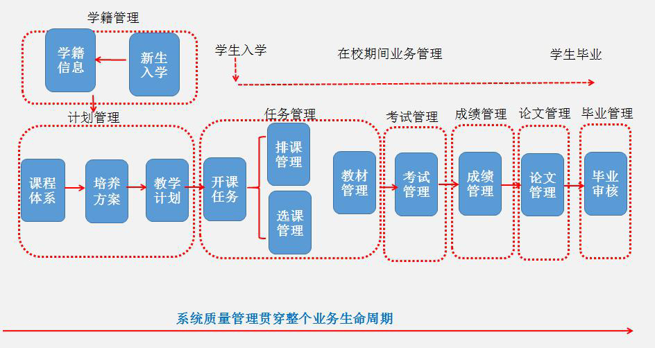 系統整體(tǐ)模塊流程:囊括學生(shēng)從(cóng)入學到(dào)畢業(yè)的(de)整個(gè)管理(lǐ)過程,體(tǐ)現(xiàn)以學生(shēng)為(w>èi)中心,進行(xíng)人(rén)才培養的(de)整個(gè)過程。将人(rén)才培養的(de)質量監測貫穿到(dào)從(cóng)學生(shēng)入學到(dào)畢業(yè)的(d e)整個(gè)過程中,開(kāi)創了(le)以人(rén)才培養為(wèi)目标、以培養質量為(wèi)抓手、以信息化(h×uà)監控為(wèi)手段的(de)人(rén)才培養質量的(de)全新模式。