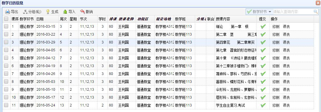 實現(xiàn)了(le)學時(shí)、天、周幾種教學度量單位的(de)一(yī)體(tǐ)化(huà)∑管理(lǐ)。