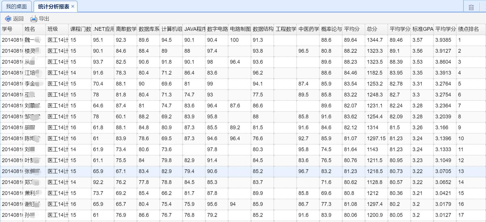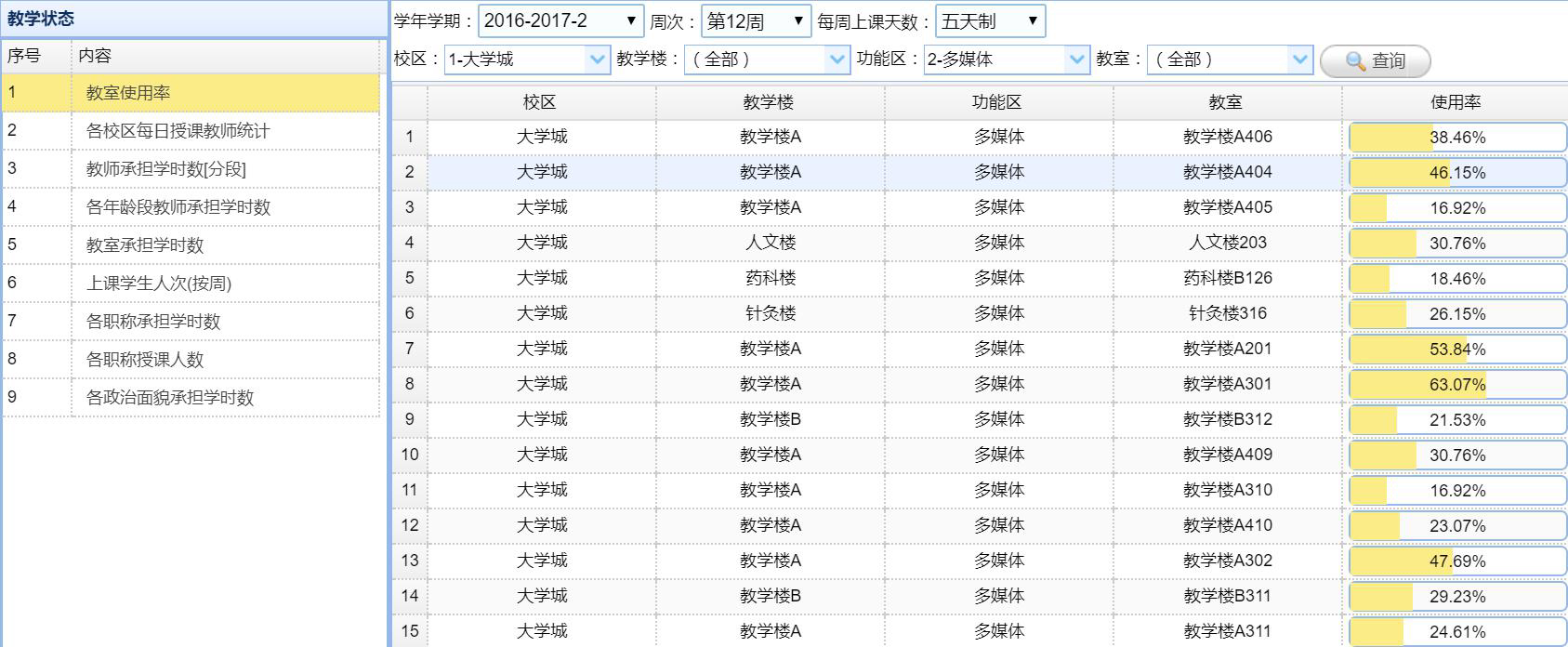 決策支持管理(lǐ)支持對(duì)系統中所有(yǒu)的(de)基礎數(shù)據進行(xíng)數(shù)據分(fēn)析與統計(jì),全方位為(wèi)領導提<供決策分(fēn)析服務,如(rú)學生(shēng)分(fēn)析(如(rú)高(gāo)基表等)、課表分(fēn)析(如(rú)調課情況統計(jì)等)、教學狀态分(fēn)析(如≈(rú)教室使用(yòng)率等)等,并能(néng)以數(shù)據加圖表的(de)方式顯示。系統同時(shí)還(hái)能(néng)提供數(shù)據挖掘接口,用(yòng)戶可(kě∏)以輸入SQL 語句直接從(cóng)系統中輸出各類所需數(shù)據,數(shù)據可(kě)來(lái)€源于系統中的(de)任意表或任意字段。以下(xià)展示幾項系統中的(de)數(shù)據分(fēn)析$: