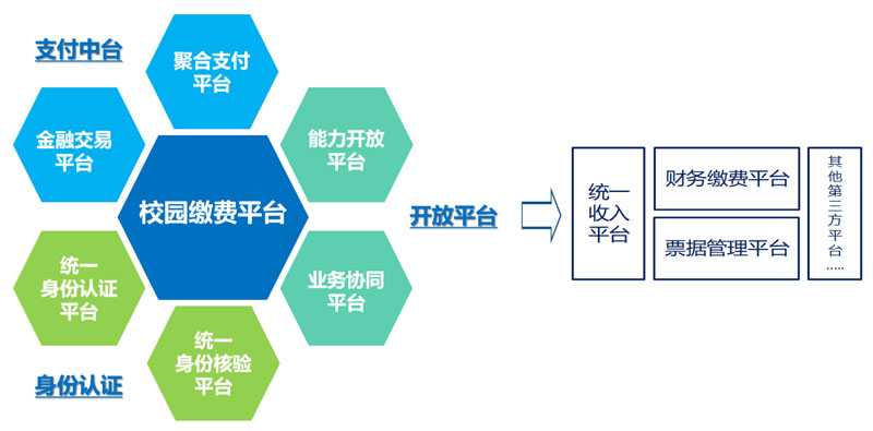 主要(yào)由聚合支付平台和(hé)金(jīn)融交易平台組成,通(tōng)過構建統一(yī)的(de)校(xiào)園資金(j§īn)賬戶及電(diàn)子(zǐ)錢(qián)包體(tǐ)系,打通(tōng)各銀(yín)行(xíng)、銀(yín)聯、支付寶、微(wēi‌)信等支付渠道(dào),為(wèi)各平台及應用(yòng)提供統一(yī)的(de)交易支付和(hé)清分(fēn)清算(suàn)服務。