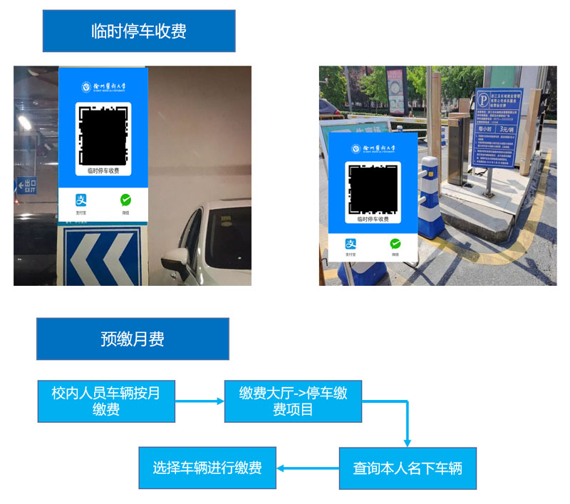 停車(chē)場(chǎng)收費(fèi)有(yǒu)預繳月(yuè)費(fèi)、臨時(shí)停車(chē)收費(fèi§)兩種模式,綜合繳費(fèi)系統通(tōng)過對(duì)接車(chē)管系統實現(xiàn)高(gāo)校(xiào)停車(chē)場(chǎng)收費(fèi)場(chǎng)×景。