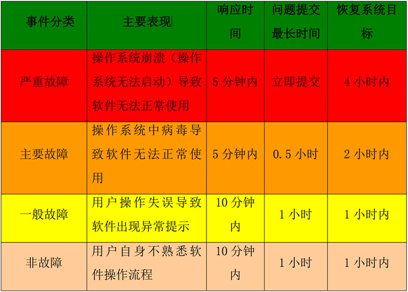 (2)選購(gòu)我司軟件(jiàn)之日(rì)起免費(fèi)維護期內(nèi),如(rú)果遇到(dào)系統故∑障, 我們将在對(duì)客戶請(qǐng)求予以及時(shí)回應。